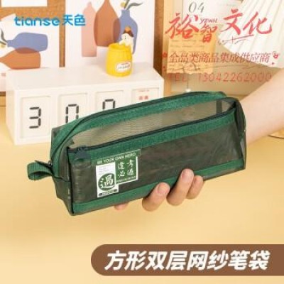 天色(TIANSE)学生笔袋 双层大容量透明笔袋 多功能文具盒笔盒铅笔盒开学必备礼物 TS-262 远山绿(逢考必过)(个)SKU:yzwhyp807856