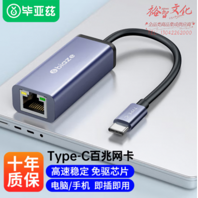 毕亚兹 Type-C百兆有线网卡 USB-C转RJ45网口转换器网线转接头 ZH199 SKU:yzwhyp808227