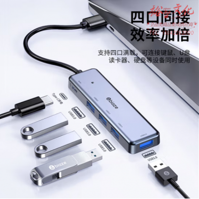 毕亚兹 USB3.0分线器扩展坞高速4口集线器HUB拓展坞带电源口 HUB36 SKU:yzwhyp808358