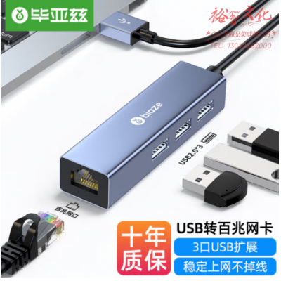 毕亚兹 USB转百兆网口扩展坞分线器集线器 有线网卡RJ45接口转换器 KZ51 SKU:yzwhyp808361