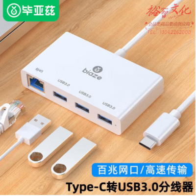 毕亚兹 USB-C扩展坞 Type-C转USB3.0分线器带网口 HUB集线器多接口拓展 R45 SKU:yzwhyp808376