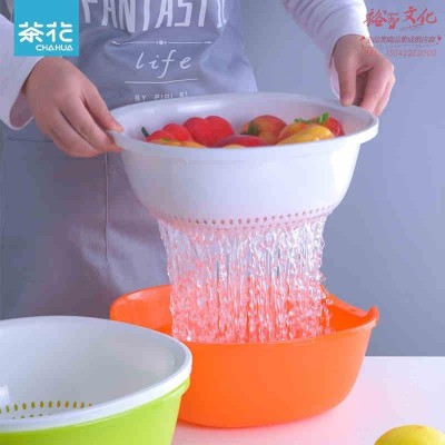 茶花(CHAHUA)沥水篮洗菜篮双层沥水架 新款绿 B35001 SKU:yzwhyp808869