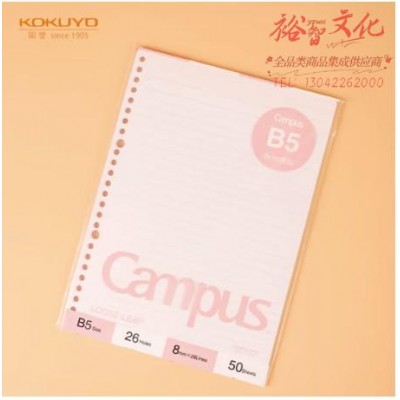 国誉(KOKUYO)B5彩色活页纸Campus活页本替芯笔记本子活页纸内页 8mm横线 50张1本SKU:yzwhyp809142
