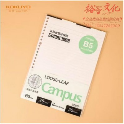 国誉(KOKUYO)B5彩色活页纸Campus活页本替芯笔记本子活页纸内页 8mm横线 50张1SKU:yzwhyp809154