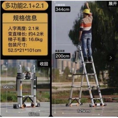 首页 > 建筑建材 > 五金附件 > 【德标加宽踏板】多功能伸缩梯子2.1+2.1=4.2米(无痕)
