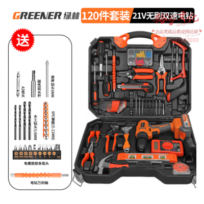 绿林(GREENER)无刷电钻多功能工具箱套装维修组合 21V无刷冲击电钻120件套装090164+051053A SKU:yzwhyp810380