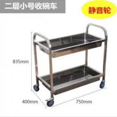 不锈钢二层小号收碗车/餐车 酒水车餐车服务车厨房推车置物架酒楼送餐车