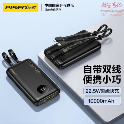 品胜(PISEN)充电宝自带双线10000mAh 22.5W快充 超薄便携 黑KC-DY12 SKU:yzwhyp811787