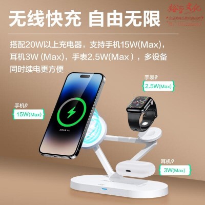 品胜(PISEN)无线充电器三合一 MagSafe磁吸充电桌面支架 15W快充 TP-C24 1.2米 SKU:yzwhyp811814