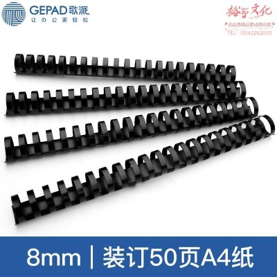 歌派(GEPAD)S1 装订机胶圈 黑色8mm 装订50页 21孔A4合同标书装订耗材 100支/盒 SKU:yzwhyp811967