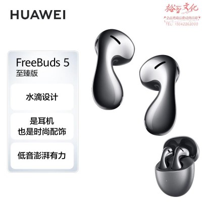 华为(HUAWEI)FreeBuds 5 至臻版 半入耳式降噪蓝牙耳机 水滴设计/澎湃单元/音乐运动耳机 冰霜银 SKU:yzwhyp812249