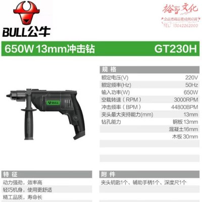 公牛 GT230H冲击电钻(key/DL)220V,650W,φ13mm SKU:yzwhyp812846