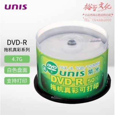 紫光(UNIS)DVD-R空白光盘/可打印刻录盘 16速4.7GB 拖机真彩可打印系列 桶装50片 SKU:yzwhyp813065