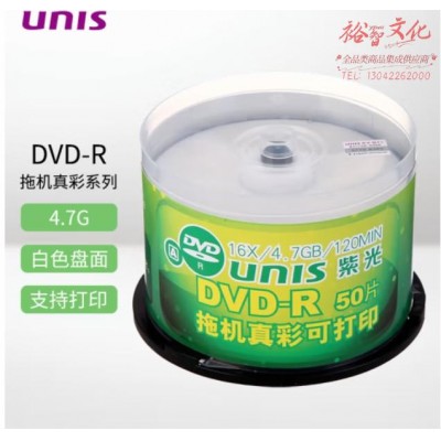 紫光(UNIS)DVD-R空白光盘/可打印刻录盘 16速4.7GB 拖机真彩可打印系列 桶装50片 SKU:yzwhyp813066