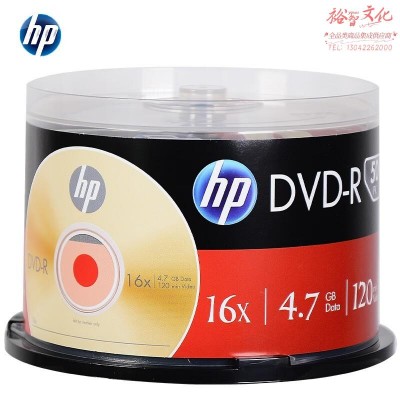 惠普(HP) DVD-R 光盘/刻录盘 空白光盘 16速4.7GB 桶装50片 台产SKU:yzwhyp813072