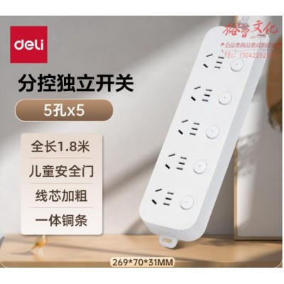 得力(deli)雅白系列新国标安全插座/插排/插线板/接线板/排插/拖线板延长线 分控 保护门5位1.8米 33942(1.8)SKU:yzwhyp813365