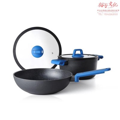 德世朗DFS-TZ116A蓝鲨不粘锅两件套 中式炒锅30cm 汤锅24cm SKU:yzwhyp813453