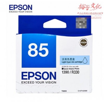 爱普生(EPSON)原装T0855淡青色墨盒适用PHOTO1390/R330打印机墨水(810页)SKU:yzwhyp813962