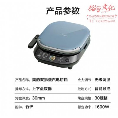 美的(Midea)家用双面加热加深大火力上下盘可拆洗烙饼煎饼三明治早餐机蒸汽煎烤电饼铛SKU:yzwhyp814150