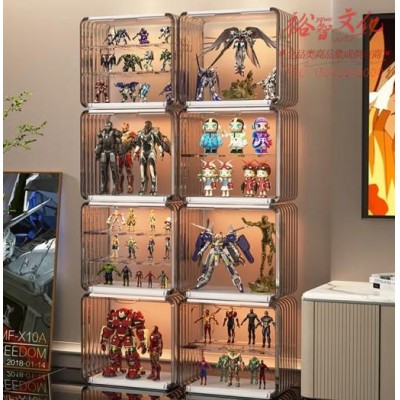 乐卡利盲盒收纳盒泡泡玛特展示盒子亚克力透明防尘手办收纳盒桌面展示柜 轻奢置物架【月影白(2个搁板)】SKU:yzwhyp814186