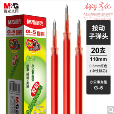 晨光G-5红色0.5mm中性笔芯 签字笔替芯 水笔芯 K35/S01/S08 20支/盒 SKU:YZB100082