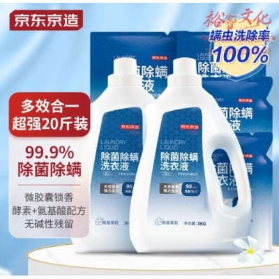 京东京造 洗衣液20斤(3kg*2瓶 1kg*4袋)除菌除螨99.9% 天然酵素留香SKU:yzwhyp814237