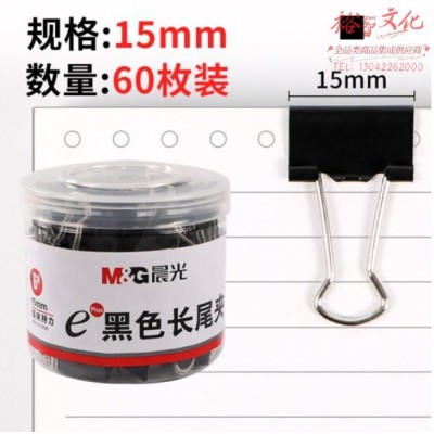 晨光 黑色长尾夹15mm 60枚/桶 ABS92737SKU:yzwhyp814860