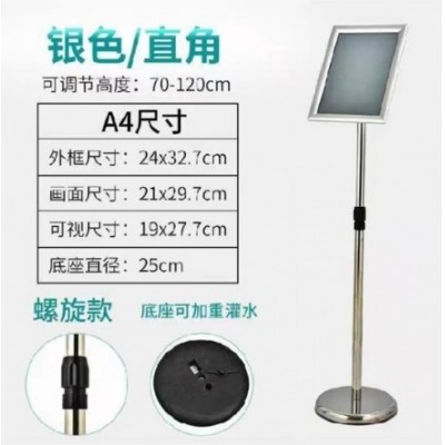 立牌指示牌立式广告牌水牌展示架 不锈钢展示牌(A4银色直角)