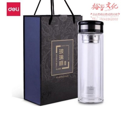 得力(deli) 6100 400ml双层隔热玻璃杯带茶隔茶杯SKU:yzwhyp816930