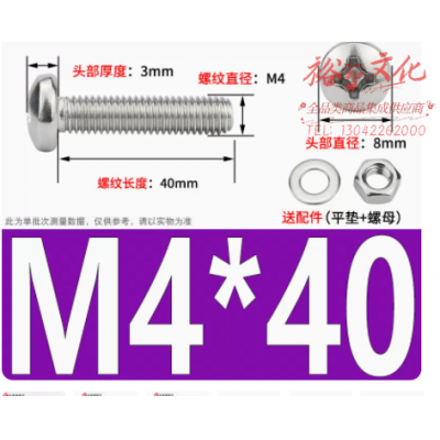 不锈钢圆头螺丝螺母套装大全螺栓垫片组合m4*40SKU:YZB100426