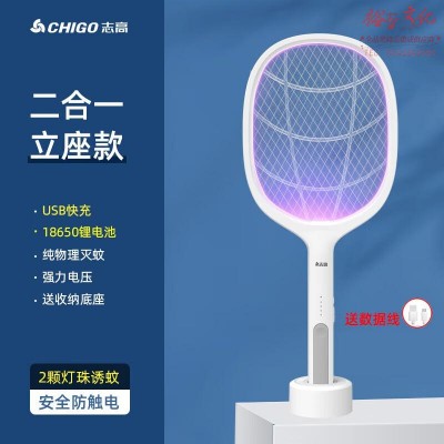 CHIGO志高 电蚊拍充电式家用灭蚊灯二合一自动诱蚊子强力驱蚊神器打苍 基础款2颗紫光诱蚊灯 锂电池SKU:yzwhyp817650