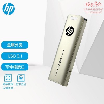 惠普(HP)128G USB3.1 U盘 X796w 香槟金 金属商务可伸缩高速读写电脑车载两用优盘SKU:yzwhyp817726