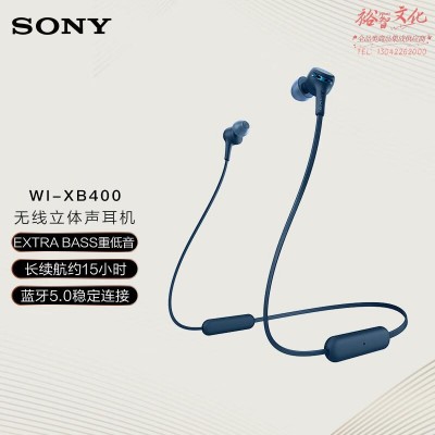索尼(SONY)WI-XB400 颈挂式 蓝牙耳机 重低音无线立体声 15小时续航 支持快充 线控 蓝色SKU:yzwhyp818862