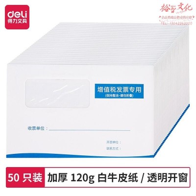 得力(deli)50张白色增值税发票收纳专用开窗信封袋 加厚财务票据袋 25204SKU:yzwhyp818992