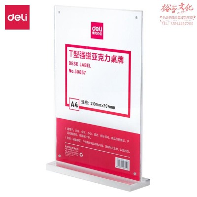得力(deli)T型A4竖式透明强磁吸附亚克力桌牌 50857SKU:yzwhyp819022