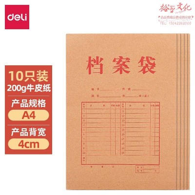 得力(deli)10只A4混浆200g牛皮纸档案袋侧宽4cm 64100SKU:yzwhyp819127