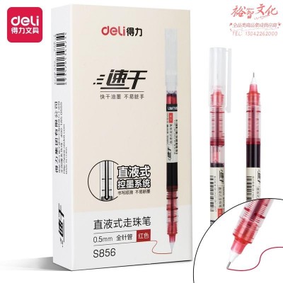 得力(deli)直液笔走珠签字笔 中性笔 0.5mm全针管12支/盒S856红SKU:yzwhyp819210
