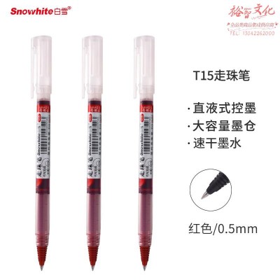 白雪(snowhite)T15直液式走珠笔子弹头中性笔0.5mm红色10支/盒SKU:yzwhyp819230