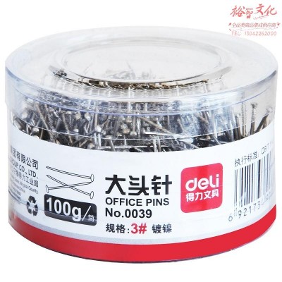 得力(deli)0039镀镍大头针 商务金属办公固定针 服装裁剪定位针/直别针 办公文具 (100克/筒) 35SKU:yzwhyp819399