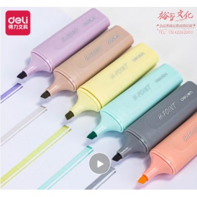 得力(deli)薄雾系扁杆柔彩荧光笔重点标记笔 手账笔彩绘笔可用水性记号笔 6支/盒 S616SKU:yzwhyp819922