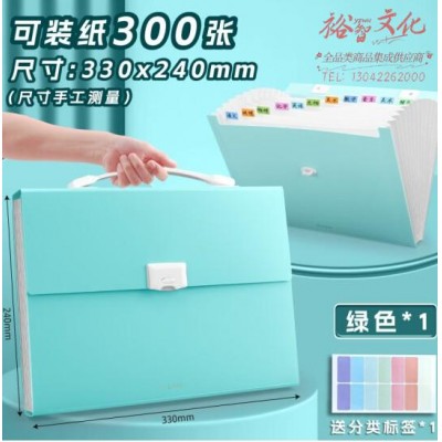 得力72410 A4-13格风琴包(绿)手提包 文件袋SKU:yzwhyp820152