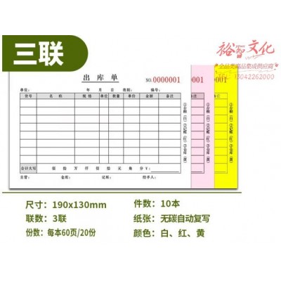无碳复写出库单 三联 32K 10本起售SKU:yzwhyp820279