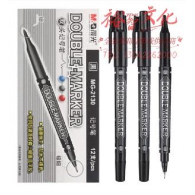 晨光 M&G 小双头记号笔 MG-2130 细头2.0mm,极细头0.5mm (黑色) 12支/盒SKU:yzwhyp820416