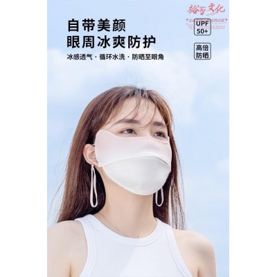 雅兰仕防晒口罩3D立体透气男女时尚防紫外线夏天超薄冰丝夏日凉感全脸防晒面罩 烟沙豆粉-冰凉触感 UPF50防晒 眼角周全防护SKU:yzwhyp820783