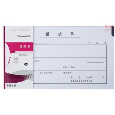 西玛(SIMAA)丙式-107借款单 财务手写单据210*120mm 50页/本 10本装SKU:yzwhyp821209