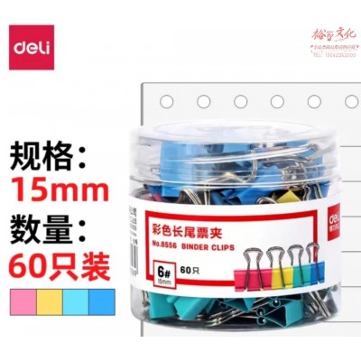 得力 8556 彩色长尾夹 15mm 60只/筒 WLSZ01021519181800SKU:yzwhyp822495