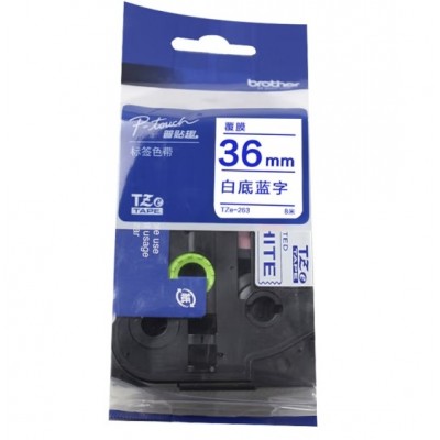 兄弟 TZE-263 白底蓝字标签打印色带 8m*36mm