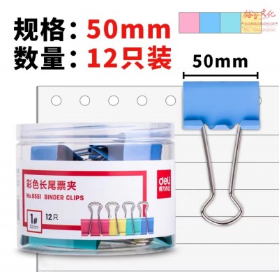 得力 8551 1#彩色长尾票夹50mm(筒装)(混)(12只/筒) SKU:yzwhyp824950