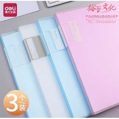 得力(deli) 27151 分页文件夹插页袋A4资料册合同文件收纳 混色30页(3本装/白蓝粉)SKU:yzwhyp825151