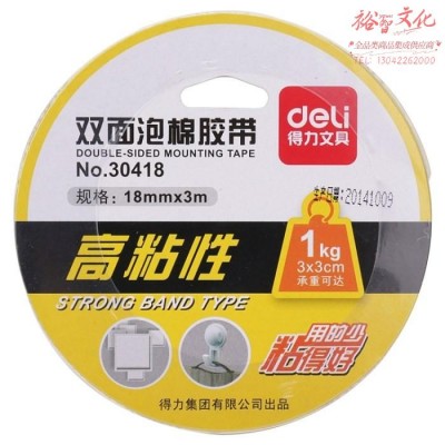 得力 30418 油性双面泡棉胶带18mm*3m*1mm(单位:盒)白色48卷/盒 SKU:yzwhyp825312